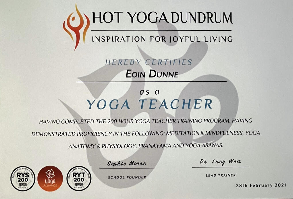 | YOGA |Eoin completed a 200-hour Yoga Teacher Training with Sophie Moore and Dr. Lucy Weir in Hot Yoga Dundrum, now known as Surya Wellness. Here he gained extensive experience in both yin yoga and vinyasa style yoga. He has taught yoga since 2021, working with a great number individuals and teams in that time. With an emphasis on building flexibility, balance, and strength, Eoin provides a blend of the grounding elements of relaxation with the energizing pace of a vinyasa class, leaving you feeling both revitalized and restored. Eoin believes in combining top-down approaches, such as shadow work which engages the mind, with bottom-up approaches like breathwork and yoga, which focus on the body. This integrated method creates a pathway to deep transformation.